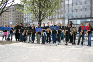 Musikalisch wurde die feierliche Eröffnung, vom Jugendsaxophonorchester der Jugendmusikschule Hamburg (JMS), die auch in Zukunft für historische Klangmomente an der Promenade am Jungfernstieg an der Binnenalster sorgen möchte.