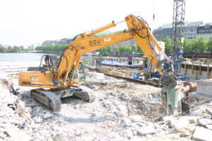 Der Jungfernstieg, der sich über das südliche Ufer der Hamburger Alster erstreckt, wird auf der gesamten Breite, großzügig in eine tribünenartige Treppenanlage zur Wasserseite umgebaut, die Jedermann-/ und -frau reichlich Sitzgelegenheit bietet.